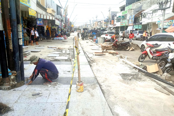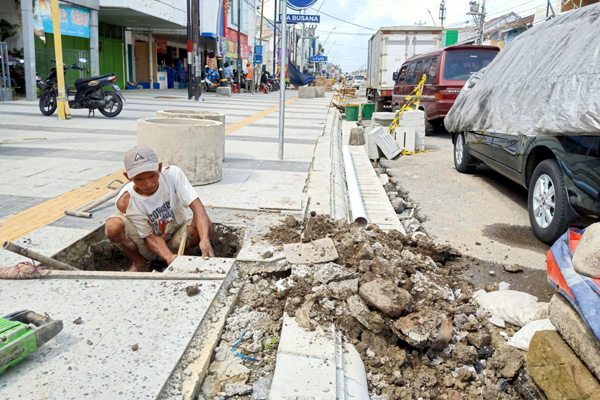 Proyek city walk ‘Malioboronya’ Tegal di Jalan Ahmad Yani Kota Tegal tidak selesai sesuai target. (Foto: gh)