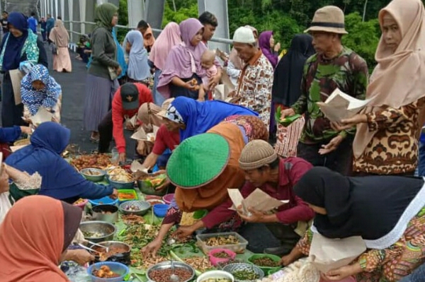 Jembatan Plompong selesai dibangun menunggu peresmian untuk digunakan. Warga syukuran melakukan makan bersama (Foto: Zaenal Muttaqin)