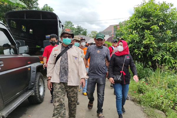 Anggota Komisi IX DPR RI, Dr. Hj. Dewi Aryani, M.Si langsung bergerak meninjau posko pengungsian warga korban longsor dan tanah bergerak di Desa Dermasuci, Minggu 13 Februari 2022 siang.