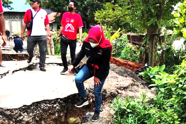 Anggota Komisi IX DPR RI Fraksi PDI Perjuangan, Dr. Hj. Dewi Aryani meninjau bencana longsor dan tanah bergerak di Desa Dermasuci, Kecamatan Pangkah, Kabupaten Tegal. (Foto: Tim DeAr)