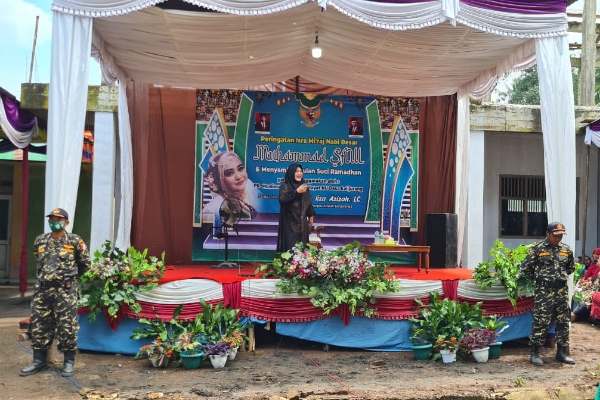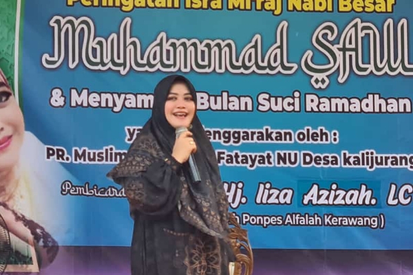 Hj Iiza Azizah dalam ceramahnya mengajak warga yang hadir untuk selalu meningkatkan kualitas iman dan takwanya kepada Allah SWT. Kualitas tersebut diwujudkan dalam bentuk ketaatan kepada Allah, seperti menjalankan ibadah sholat lima waktu yang merupakan perintah Allah yang diterima Nabi SAW saat peristiwa Isra' Mi'raj.