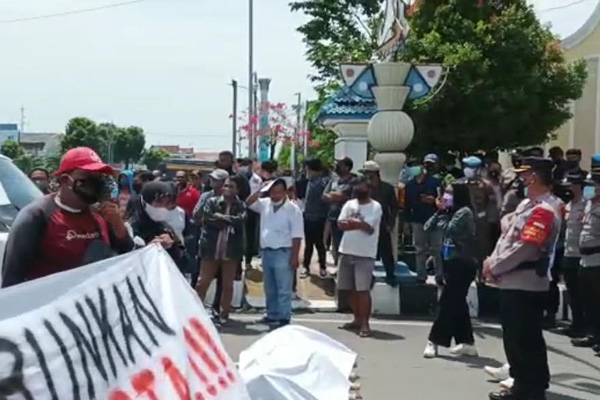 Demo aksi damai penyampaian aspirasi warga Tegal dalam Gerakan Tegal Bersatu di gerbang Balai Kota Tegal. (Foto: Jayeng)
