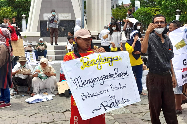 “Karena itu, Proyek Citywalk Jalan A. Yani harus dibatalkan karena tanpa perencanaan dan tujuan yang jelas, menghabiskan anggaran, menimbulkan masalah sosial, dan mematikan ekonomi masyarakat,” ujar orator lainnya.