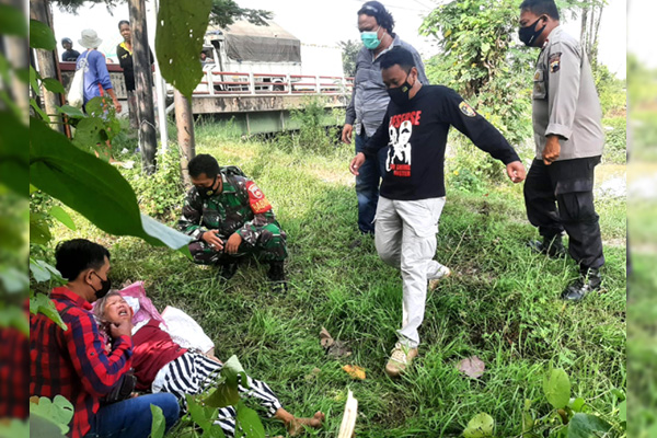 Seorang nenek ditemukan di pinggir Jalan Raya Pantura masuk Desa Bangsri, Kecamatan Bulakamba. Oleh petugas dibawa ke rumah sakit untuk mendapat perawatan. (Foto: Takwo Heriyanto)