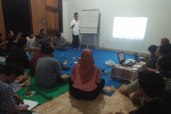 Darwanto memberikan pemahaman terkait bagaimana cara membongkar kasus korupsi dalam kegiatan Tadarus Anggaran dan Anti Politik (Tangga Antik), yang diadakan selama dua hari, mulai 16-17 April 2022, di Markas Gebrak, Jalan Taman Siswa Brebes.