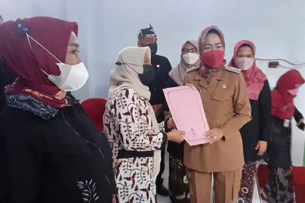 Bupati Brebes Hj Idza Priyanti secara simbolis serahkan bantuan tranaport untuk Kader Posyandu di Kecamatan Sirampog (Foto: Zaenal Muttaqin)