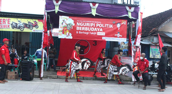"Kebetulan untuk lebih memeriahkan acara, kami mengajak seniman jaran kepang untuk ikut bersama-sama menghibur sekaligus bagian dari eksistensi menghidupkan nilai-nilai politik kebudayaan. Karena pertunjukan jaran kepang di daerah kami wujud kearifan lokal yang harus di jaga dan selalu ada,” kata Paramitha.