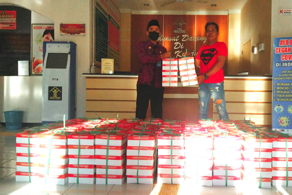 Pengusaha Muda di Kabupaten Brebes, Kingking Trahing Kusuma membagikan ratusan nasi bungkus dan takjil. (Foto: Dok/Takwo Heriyanto)