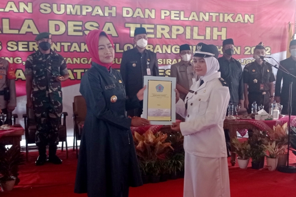 Bupati Brebes Hj Idza Priyanti SE MH melantik 18 Kades terpilih di wilayah selatan (Foto: Zaenal Muttaqin)