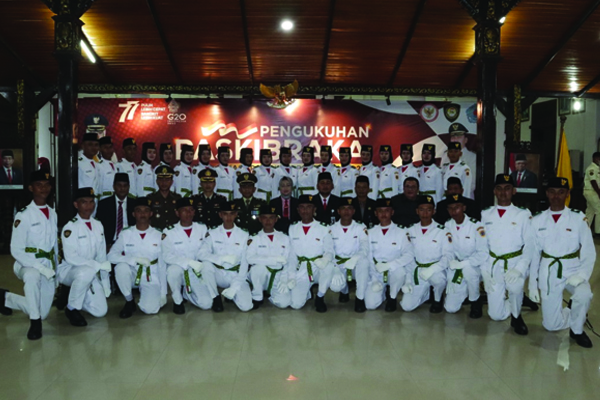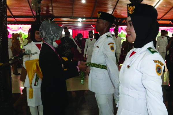 PanturaNews (Brebes) - Bupati Brebes Hj Idza Priyanti SE MH mengukuhkan 32 anggota pasukan pengibar bendera pusaka (Paskibraka) 2022 yang akan bertugas pada Upacara HUT ke-77 Kemerdekaan RI. Pengukuhan dilakukan dengan hikmat yang disaksikan oleh orang tua mereka, di Pendopo Bupati Brebes, Senin 15 Agustus 2022.