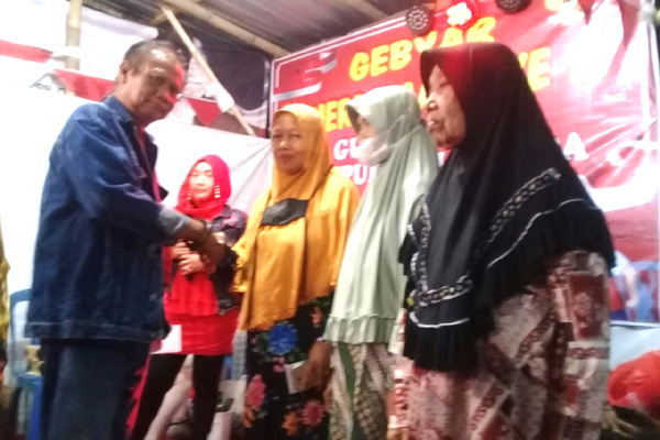 Panitia Penyelenggara Gebyar Kemerdekaan, Darmadi yang juga sebagai sesepuh GRSPS menyerahkan santunan kepada 40 janda dan anak yatim di wilayah RW III Kelurahan Slerok. (Foto: Dok/KST)