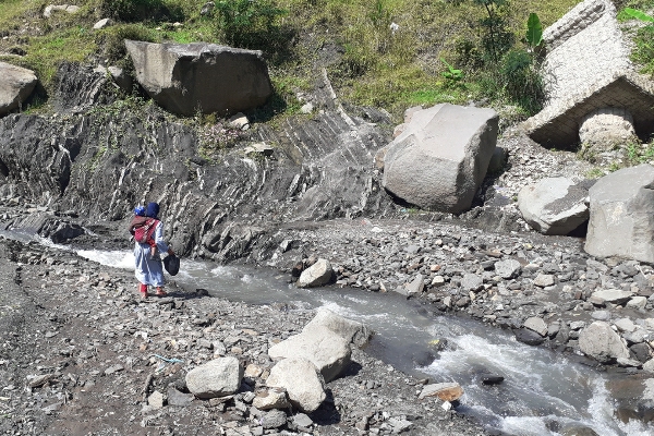 "Sejak jembatan putus dua kali dibuat jembatan darurat dari bambu tapi hanyut juga diterjang arus sungai," ungkap Sudiryo.