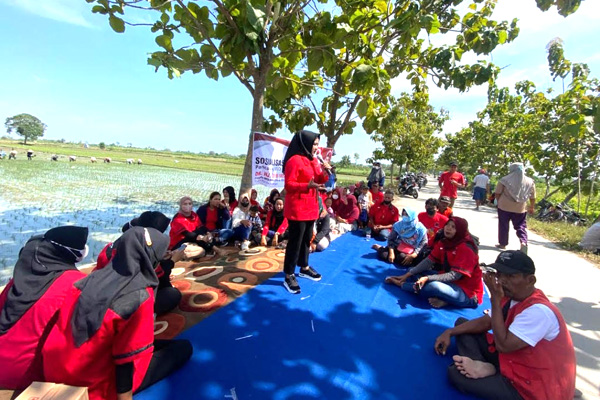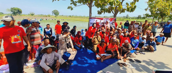 Jika sosialisasi sebelumnya dilakukan di Rumah Aspirasi Dewi Aryani di Desa Sidaharja, kali ini terbilang unik karena digelar di jalan persawahan Desa Plumbungan dan Maribaya, Kecamatan Kramat, Kabupaten Tegal, Kamis 29 September 2022.