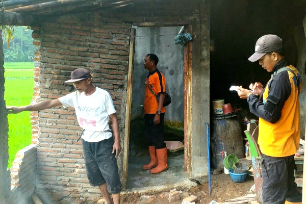 Petugas dari Satgas PB BPBD melakukan asesmen pada rumah warga yang rusak akibat longsor di Paguyangan (Foto: Dok. PB. Zaenal)