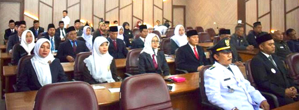 PanturaNews (Indramayu) - Sekretaris Daerah (Sekda) Kabupaten Indramayu, Rinto Waluyo mewakili Bupati Indramayu Nina Agustina melantik dan mengambil sumpah Pejabat Administrator dan Pejabat Pengawas di Ruang Ki Tinggil Setda Indramayu, Rabu 26 Oktober 2022.