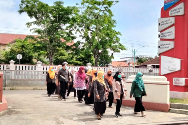 Puluhan tenaga kesehatan Puskesmas Tonjong menggeruduk Kantor Dinas Kesehatan Brebes mendesak Kepala Dinkes mengganti Kepala Puskesmasnya. (Foto: Takwo Heriyanto)