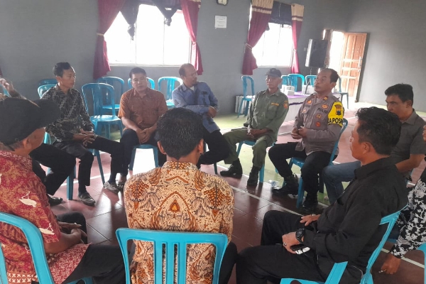 Kapolsek Iptu Kasam SH bersama Kanit Intelkam Aiptu Tarjono SH berbincang akrab bersama para tokoh di Aula Desa Kaliwadas.
