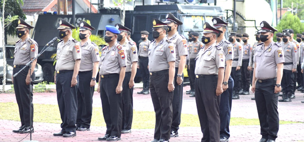 Kapolres Tegal Kota, AKBP Rahmad Hidayat melantik 28 personil yang naik pangkat 1 tingkat di halaman Mapolres. (Foto: Dok)