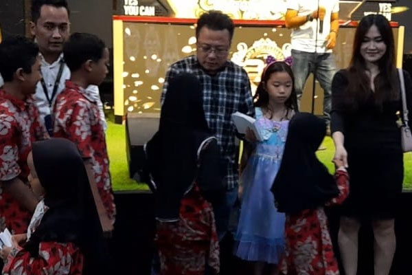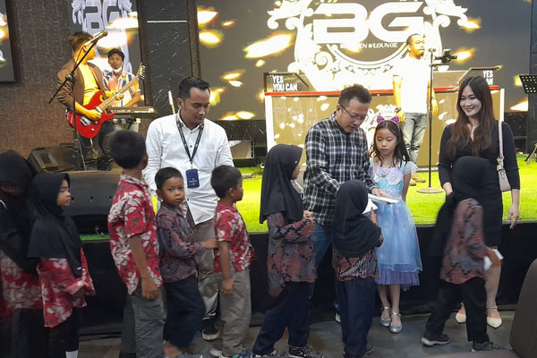 Owner BG Kitchen dan Lounge, Sugiarto didampingi istri memberikan santunan kepada anak yatim