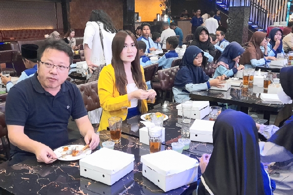 Owner BG Kitchen and Lounge, Sugiarto dan istrinya, Yuliana makan bareng bersama anak yatim