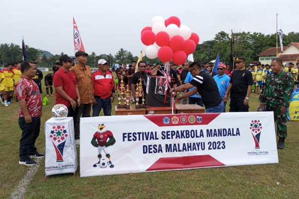 Pembukaan Festival Sepakbola Mandala Perkasa Cup 2023 di lapangan Desa Malahayu ditandai dengan pelepasan balon ke udara. (Foto : Ist)