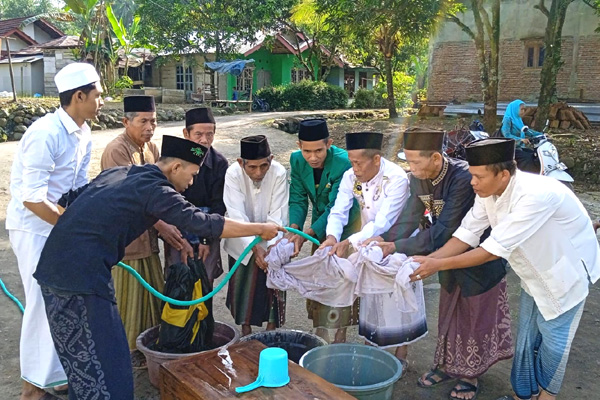 Warga Desa Pagelaran, Kecamatan Watukumpul, Pemalang saat jamasan klambu makam Mbah Tepus Natasangin. (Foto: Dok)