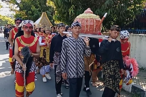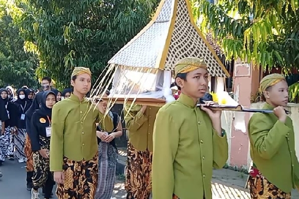 PanturaNews (Tegal) - Ratusan Pelajar SMA 1 Tegal, Jawa Tengah, menggelar tradisi Mantu dan Sunat Poci, Selasa 16 Mei 2023. Kegiatan tersebut untuk melestarikan kebudayaan Kota Tegal yang hampir punah.