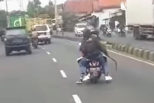 Dengan mengendarai sepeda motor dan membawa senjata tajam, sejumlah pelajar terlibat tawuran di Pantura Tanjung, Kabupaten Brebes. (Foto: Ist)
