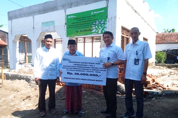 Bantuan diserahkan oleh Administratur / KKPH Pekalongan Barat, Haris Setiana didampingi Kasi Keuangan SDM dan Umum, Edi Heryanto, di lokasi pembangunan Masjid Al Falah, Jalan Darusalam Pegirikan, Kecamatan Talang.