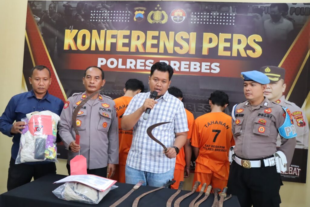 PanturaNews (Brebes) - Polres Brebes berhasil meringkus tiga tersangka pelaku pembacokan antar geng motor di Bumiayu Kabupaten Brebes, Jawa Tengah. Aksi pembacokan terjadi di jalan lingkar jalur Desa Kalietang Kecamatan Bumiayu pada Selasa 18 Juli 2023 dini hati lalu.
