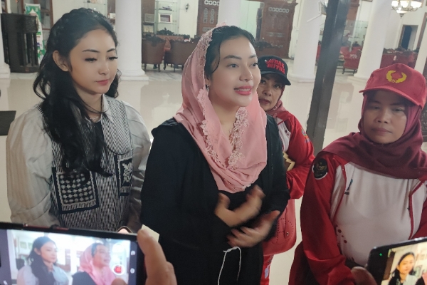 Anggota DPR RI asal Kabupaten Brebes Paramitha Widya Kusuma, di sela-sela pelapasan Kontingen Kabupaten Brebes Porprov Jateng XVI 2023, di Pendopo Brebes, Kamis 28 Juli 2023 malam saat di wawancarai awak media. (Foto: Takwo Heriyanto)