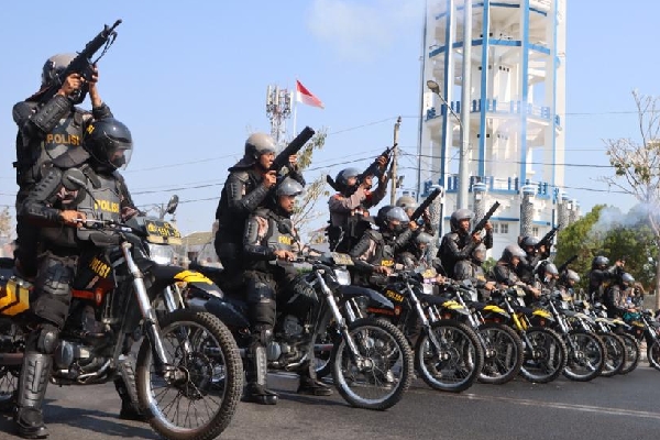 "Untuk mengamankan Pemilu Tahun 2024, Polri dengan dukungan TNI, Kementerian/Lembaga, Instansi Terkait dan Mitra Kamtibmas lainnya menggelar Operasi Mantap Brata 2023 - 2024. Operasi ini akan berlangsung selama 222 hari sejak tanggal 19 Oktober 2023 sampai 20 Oktober 2024. Dengan melibatkan 261.695 personel di seluruh Indonesia," ungkap Kapolres dalam amanatnya.