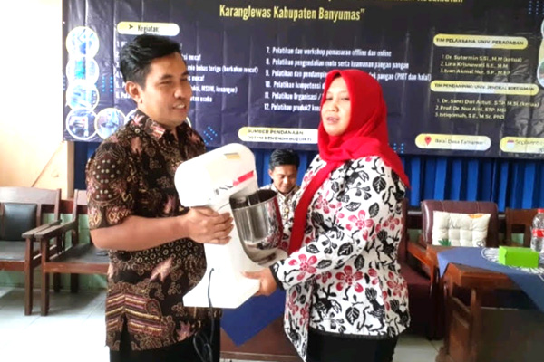 Penyerahan hibah alat produksi pada pelatihan dan workshop produksi mocaf. (Foto: Dok)