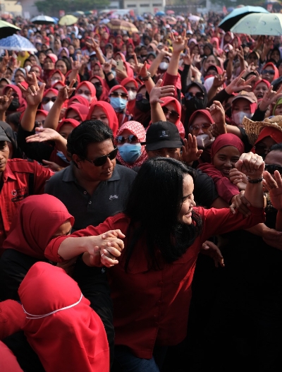 Hal itu nampak saat Shanty Alda hadir di acara silaturahmi yang dihadiri ribuan pendukungan di lapangan Raden Rangga Kecamatan Banjarharjo, juga di Kecamatan Wanasari Kabupaten Brebes, Minggu 29 Oktober 2023.