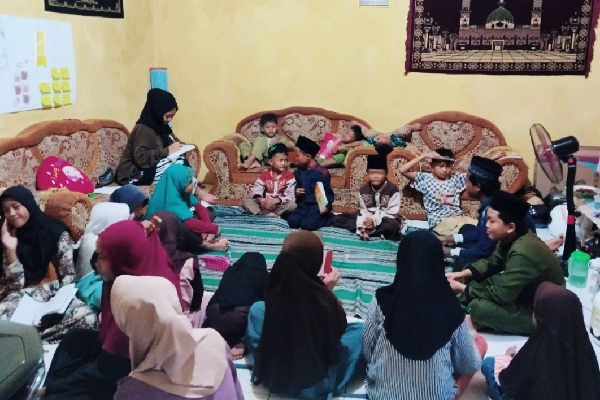 Mahasiswa UP memberikan bimbingan belajar kepada anak-anak di Desa Karangsembung. (Foto: Dok)