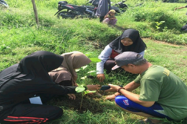 Mahasiswa UP melakukan penanaman simbolis untuk aksi menenam seribu pohon di Desa Pepedan. (Foto: Dok)