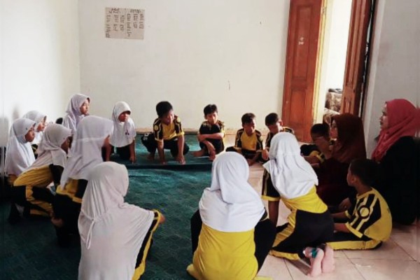 Mahasiswa UP memberikan Bimbel kepada anak SD dan MI yang tinggal di sekitar Posko KKN. (Foto: Dok)