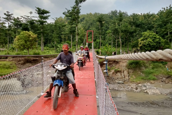 "Alhamdulillah hari ini warga Dukuh Wadas Gumantung sudah menikmati Jembatan Gantung Merah Putih”. tutup Kades.