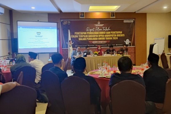 PanturaNews (Brebes) - KPU Kabupaten Brebes menetapkan Caleg DPRD Brebes terpilih hasil Pemilu 2024. Penetapan caleg terpilih sesuai hasil rapat pleno terbuka terkait perolehan kursi dan penetapan calon terpilih anggota DPRD Brebes hasil Pemilu 2024, Kamis 2 Mei 2024 malam.