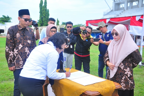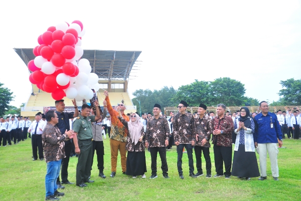 Acara pelantikan pengambilan sumpah janji dan sekaligus penandatanganan pakta integritas anggota PPS se Kabupaten Brebes untuk Penyelenggaraan Pilkada Serentak Tahun 2024 ini, ditandai dengan menerbangkan balon ke udara, di lapangan Stadion Karangbirahi Brebes, Minggu 26 Mei 2024.