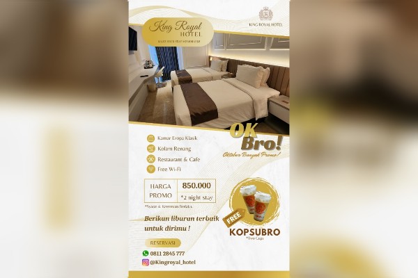 Selama bulan Oktober, King Royal Hotel Brebes menawarkan promo spesial "OK BRO! Oktober Banyak Promo". Dengan harga Rp 850.000, tamu dapat menginap selama 2 hari dan mendapatkan bonus 2 cup's Kopsubro (kopi susu gula aren) signature dari King's Coffee.