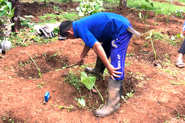 Penanaman bibit di lahan Pak Badru dilakukan pada tanggal 12 Agustus 2025 dengan menanam total 160 bibit yang terdiri dari 118 bibit talas dan 42 bibit kapulaga. Sementara itu, di lahan Pak Ujang, penanaman dilaksanakan pada tanggal 15 Agustus 2025, dengan total 60 bibit terdiri dari 35 bibit talas dan 25 bibit kapulaga.