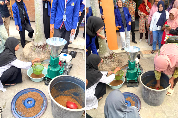 Peserta diajak melihat dan mempraktikkan proses mulai dari pencampuran bahan, fermentasi, hingga pencetakan pakan dengan menggunakan alat pencetak pelet “feedsmart” rakitan tim PRAJA. Antusiasme masyarakat tampak dari keaktifan peserta yang berdiskusi dan mencoba langsung proses pembuatan pakan alternatif ini.