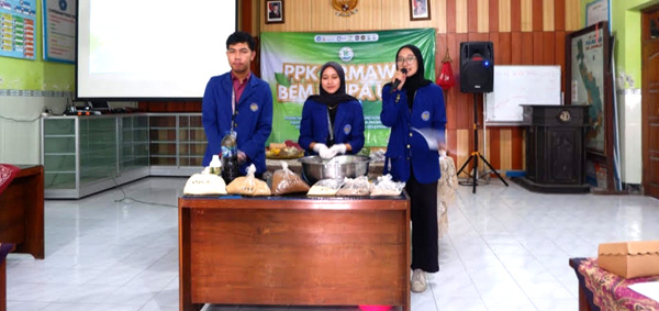 Setelah sesi materi, kegiatan dilanjutkan dengan demonstrasi pembuatan pakan ikan lele secara langsung oleh Nasywa Safira Ardhani, Nurmala Jati, dan Khusni Amri.