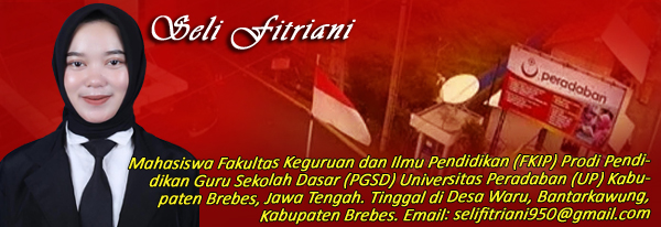 Mahasiswa Fakultas Keguruan dan Ilmu Pendidikan (FKIP) Prodi Pendidikan Guru Sekolah Dasar (PGSD) Universitas Peradaban (UP) Kabupaten Brebes: Mutiara Ratnaningtias, Saras Okta Permatasari, Seli Fitriani, Dina Awalia Salsabila, Muhammad Nasrulloh, M.Roby Harland.