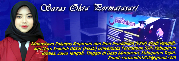 Mahasiswa Fakultas Keguruan dan Ilmu Pendidikan (FKIP) Prodi Pendidikan Guru Sekolah Dasar (PGSD) Universitas Peradaban (UP) Kabupaten Brebes: Mutiara Ratnaningtias, Saras Okta Permatasari, Seli Fitriani, Dina Awalia Salsabila, Muhammad Nasrulloh, M.Roby Harland.