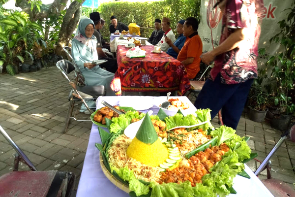 Acara ngeteh bareng dilanjutkan dengan pemotongan tumpeng serta sarapan bersama. Di serahkan oleh Rektor Universitas Bhamada, Ds. Maufur kepada Ibu Piek –sapaan akrab Hj. Itiningsih di kalangan seniman."Semoga umur secukupnya, rejeki secukupnya dan Amal Baik semaksimalnya".
