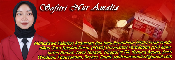 Mahasiswa Fakultas Keguruan dan Ilmu Pendidikan (FKIP) Prodi Pendidikan Guru Sekolah Dasar (PGSD) Universitas Peradaban (UP) Kabupaten Brebes: Sofitri Nur Amalia, Faza Alfina Lestari, Rizki Wandira, Istighfari Dara Maulidia, Iva Khumaeroh Khoerunnisa, Muhamad Haekal Wildani.