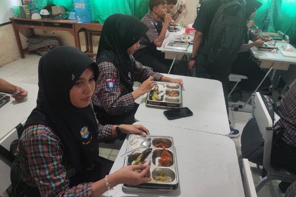 Setelah dari dapur pengolahan, rombongan BPKP dan Bupati turut mendampingi distribusi makanan MBG ke SMA 3 Brebes sebagai salah satu penerima manfaat.