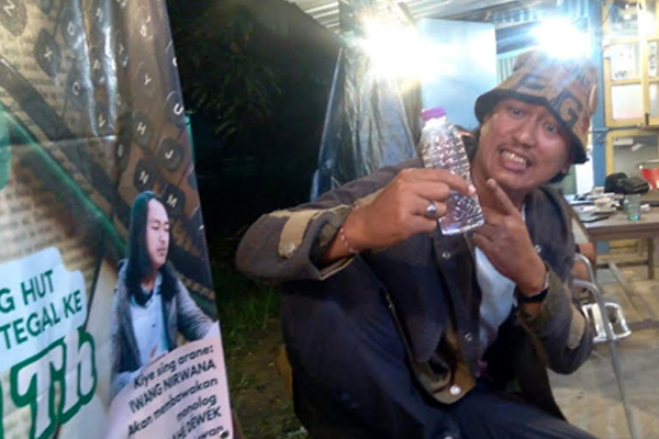 Setelah itu Iwang Nirwana naik ke panggung, membawakan monolog “Kena Tulahé Déwék”, karya yang saya tulis sebagai pengingat tentang manusia modern yang sering kalah oleh ciptaannya sendiri. Ketika mesin sudah bisa meniru cinta dan menyalin puisi, manusia justru kehilangan arah.